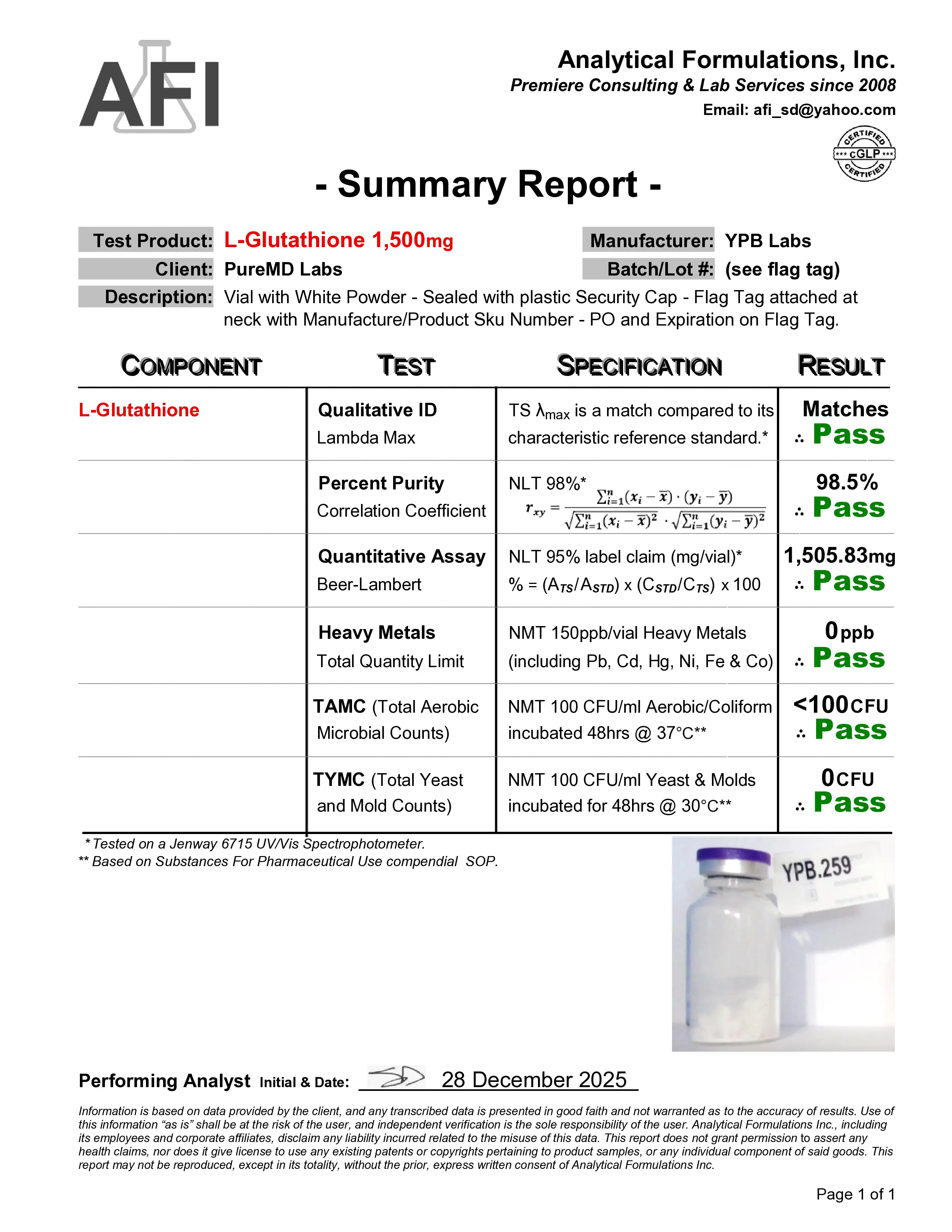 Certificate of Analysis